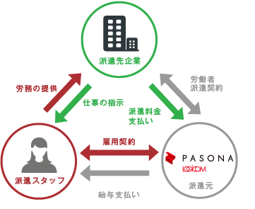また、派遣スタッフの給与支払・社会保険手続きなどはパソナロジコムが行うため、労務管理の負担を軽減することができます。